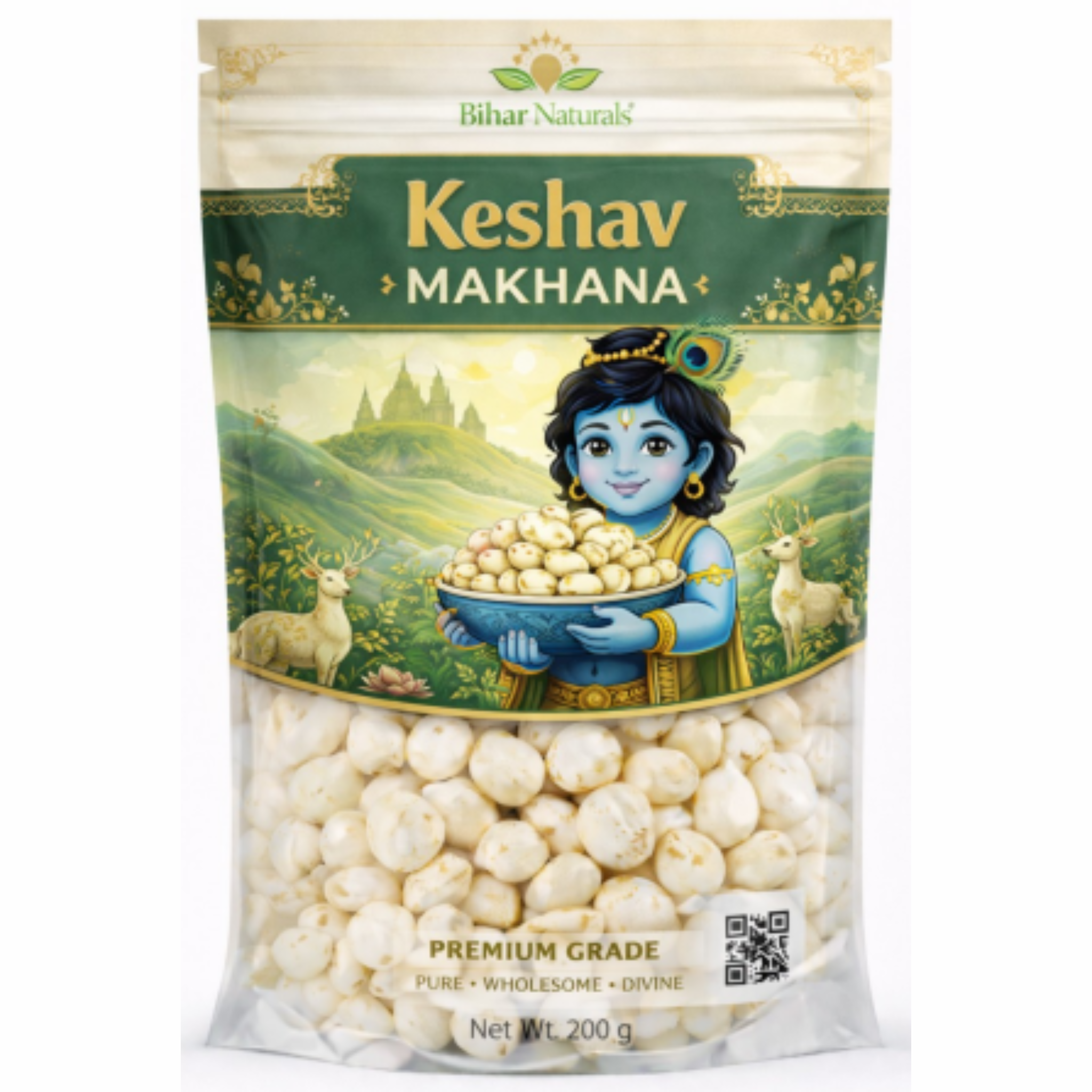 Keshav Makhana by Bihar Naturals is a warm, accessible makhana proposition designed with the masses in mind—balancing affordability, familiarity, and wholesome snacking appeal for everyday Indian households. Packed with freshness and crafted for today’s health-conscious consumer, it offers satisfying crunch, natural appeal, and a confident brand presence.